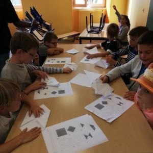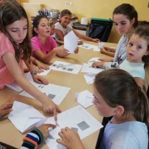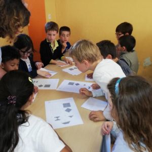 Ensuite nous avons travaillé avec la classe de CM1/CM2 pour la réalisation de bateaux en origami.