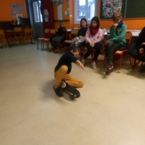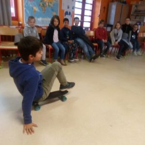 - Faire avancer une planche à roulette sans toucher le « sol » avec les pieds ou les mains.
