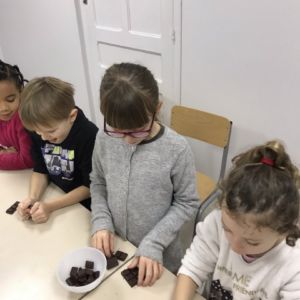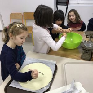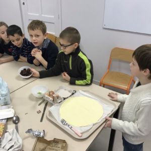 En lecture , les élèves ont travaillé autour de la recette de la galette en identifiant les verbes d’action et en remettant les étapes de la recette dans l’ordre. Puis par groupes , ils ont réalisé des galettes gourmandes ! Chocolat frangipane !! Le temps de cuire les galettes, ils ont réalisé des couronnes décorées selon leurs envies .