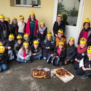 Nous avons dégusté nos galettes pour le goûter. Ylan a été roi et a choisi Anouk Julie a été reine et a choisi Louis