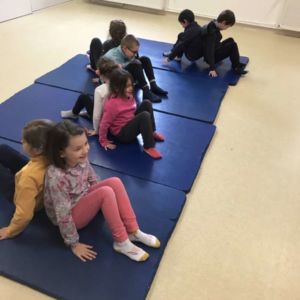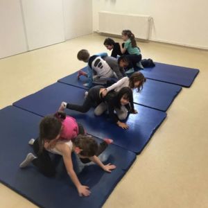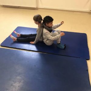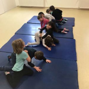 en période 4 , les élèves de CP-CE1 ont commencé un cycle de sport autour de la lutte afin de travailler la compétence maîtriser un affrontement interindividuel.Avec des petits jeux en binômes les élèves devaient essayer de faire sortir l’adversaire du tapis , de mettre l’adversaire sur le dos ou au contraire de résister au maximum.