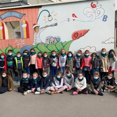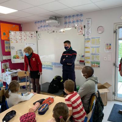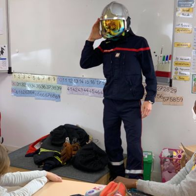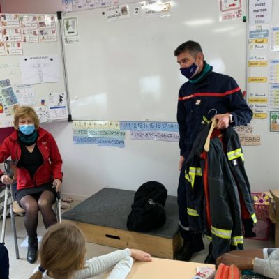 Ils nous ont expliqué le but de l’association et le parrain , un pompier nous a raconté son métier et ses entraînements de course à pieds. Il peut courir jusqu’à 100 km par jour !!Nous avons tous reçu un tour de cou pour symboliser notre participation.