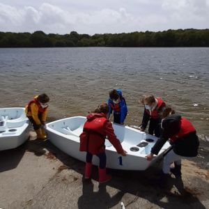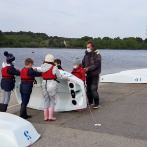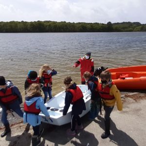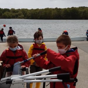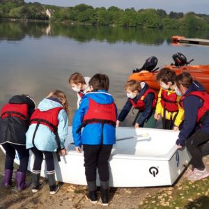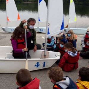 Les élèves de CE2 ont débuté avec beaucoup de plaisir leur initiation à la voile. Les moniteurs leur ont présenté une partie de l’équipement d’un optimist : gouvernail et dérive à la première séance. Ils ont appris à utiliser le gouvernail pour se diriger aisément et à garder l’équilibre.