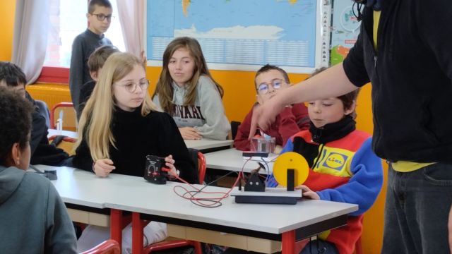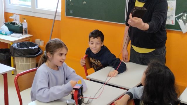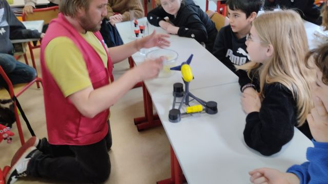 Malo, animateur en sciences à la maison de la mer, est venu nous présenter les différentes énergies. Nous avons appris le fonctionnement de différents objets et les sources, comme le vent, le soleil, l’eau… qui permettent de produire de l’électricité,