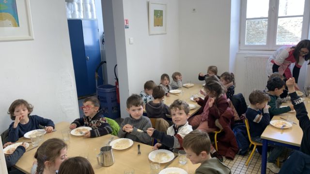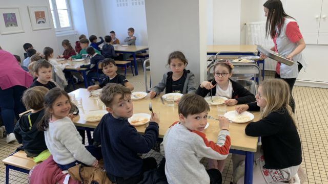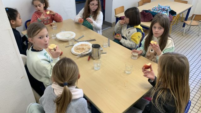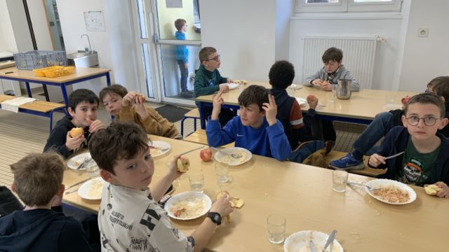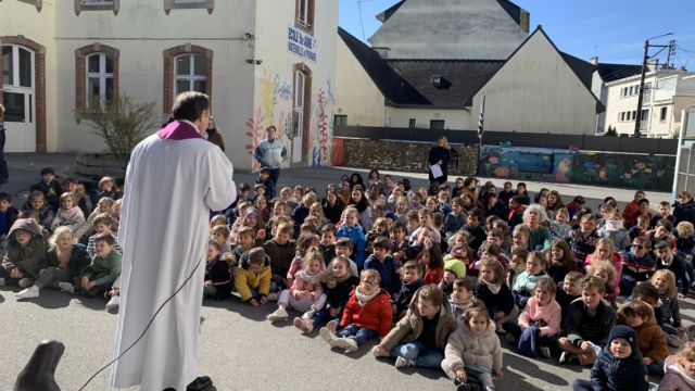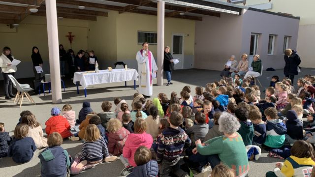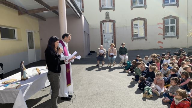 Aujourd’hui à l’école nous avons célébré le Vendredi Saint avec une célébration . Toutes les classes se sont retrouvées dans la cour avec Père Hervé et l’équipe pastorale . Puis nous avons partagé un bol de riz et une pomme en ce temps de Carême . Les fonds de ce repas seront reversés à l association Bayanihan pour la construction d une école aux Philippines .
