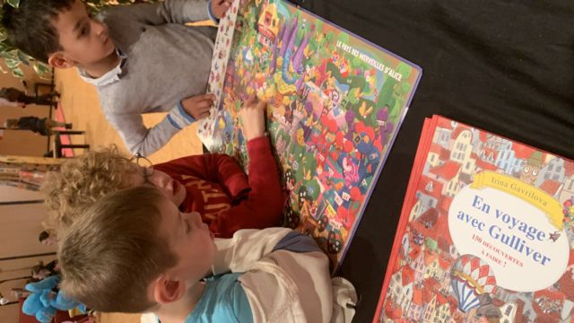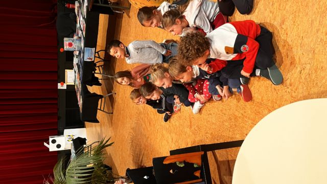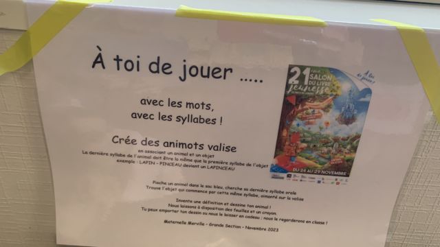 Mardi 28 novembre nous avons participé au salon du livre sur le thème du jeu .  Nous avons eu différentes animations: lecture d’histoires mimées , avec kamishibaï …  Puis nous avons pu jouer avec des jeux  fabriqués par d’autres écoles et découvrir librement des livres.