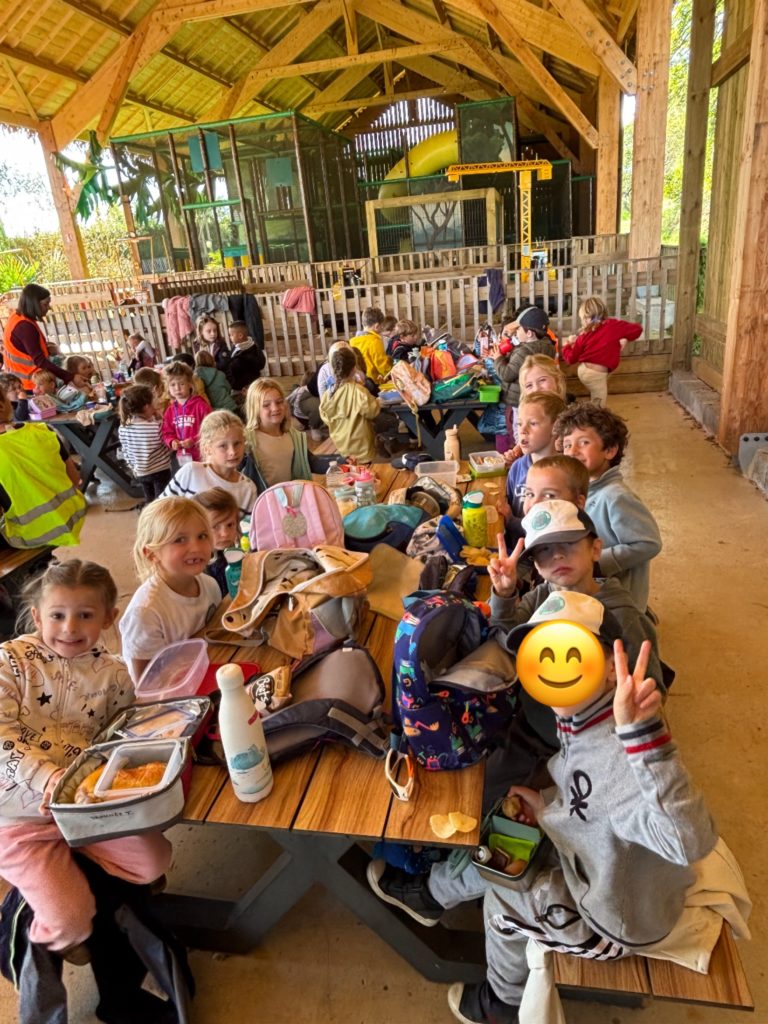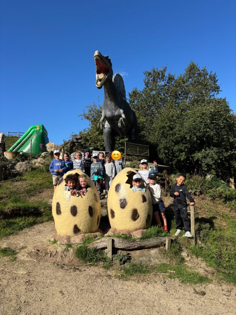 Les CP ont pu profiter d’une journée à l’Aven Parc ce vendredi 26 septembre. Sous un beau soleil d’automne, ils ont pu s’amuser sur les trampolines, les descentes en bouée, les structures gonflables. Ils ont également découvert le parcours des dinosaures et participé à un atelier de peinture végétale avec des jus de légumes et épices .