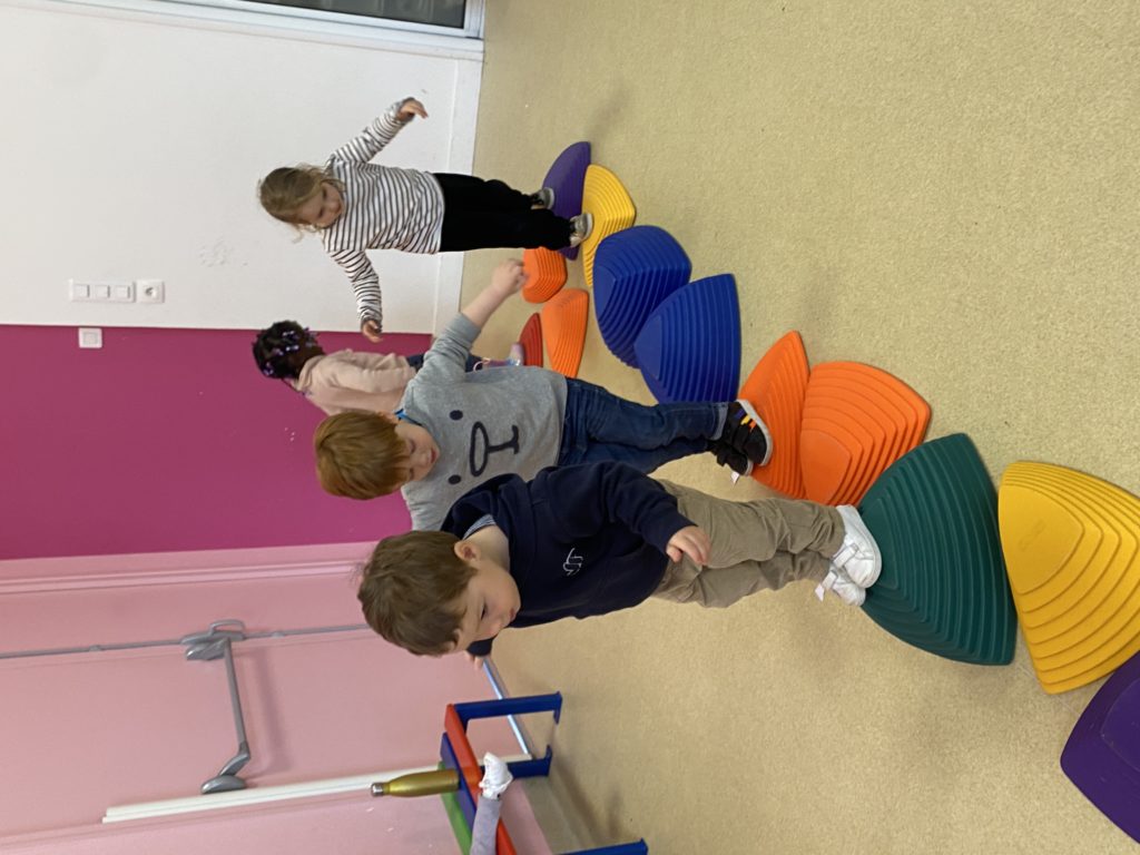 Les TPS-PS font de la motricité jeudi, novembre 27, 2025 Karine RACAPE TPS-PS Quelques activités en motricité: on rampe, on saute, on marche en équilibre !