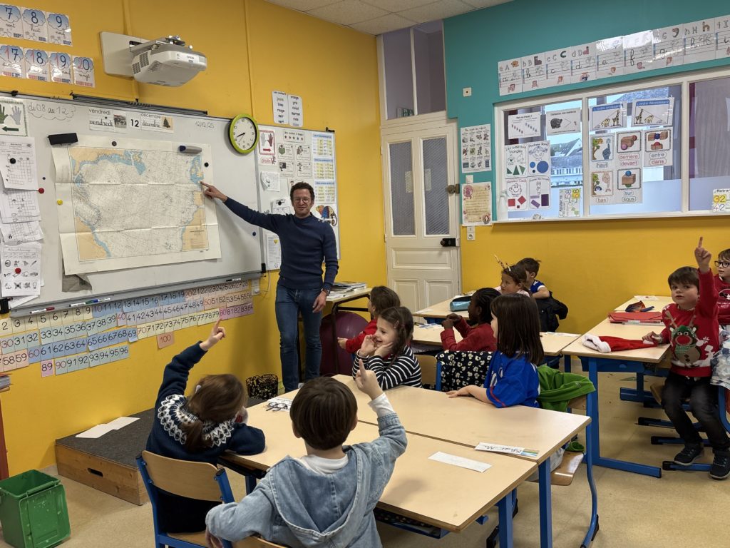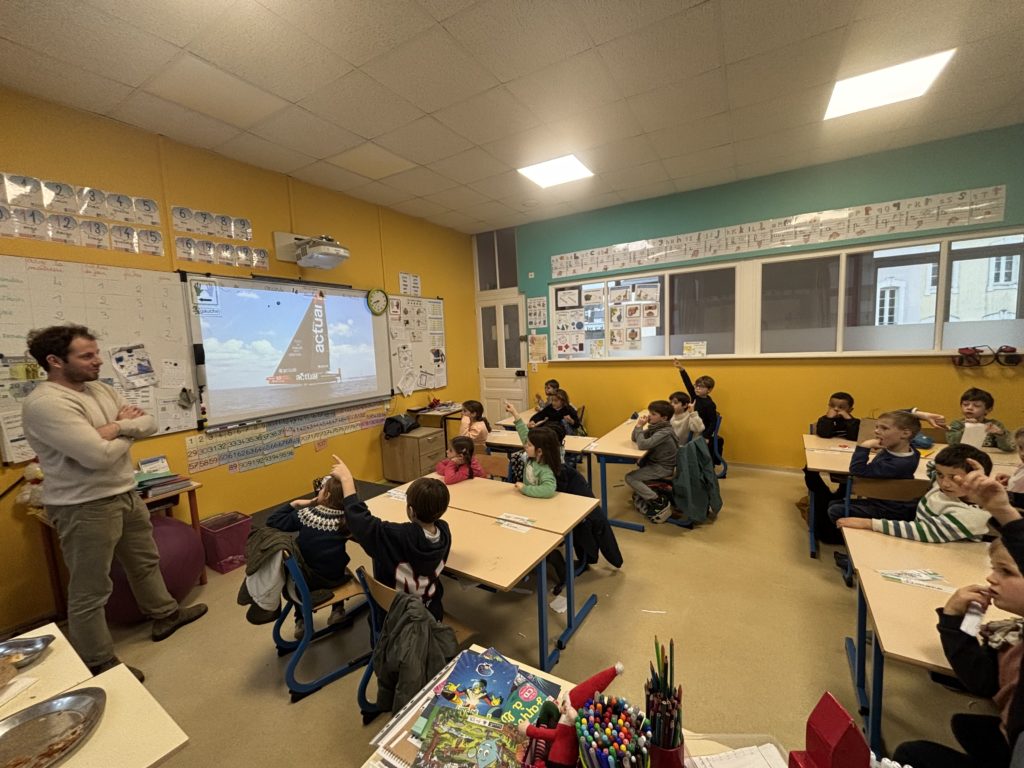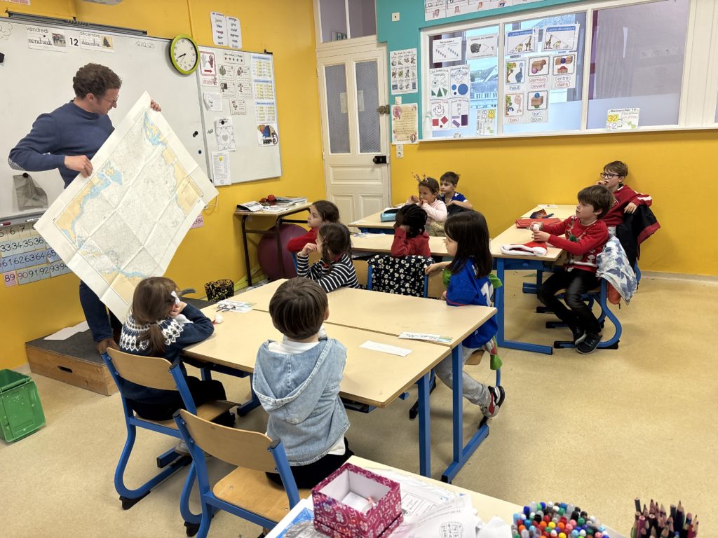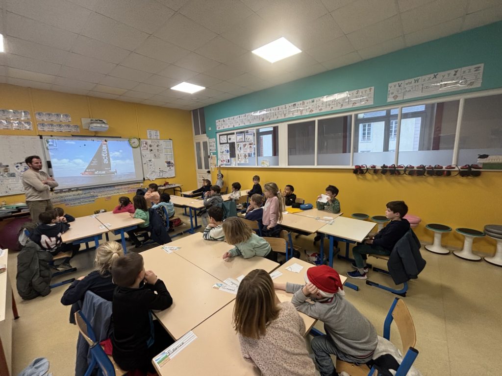 Nous avons eu la chance deux recevoir en classe deux papas skippers qui sont venus nous raconter leurs expériences de transat ! Mr Julien VILLION qui a réalisé la transat café l’or en ultim du Havre jusqu’en Martinique et Mr Louis HULET qui a réalisé la mini transat la boulangère des Sables d OLONNE jusqu’en Guadeloupe. Merci à eux pour leur partage d expérience !