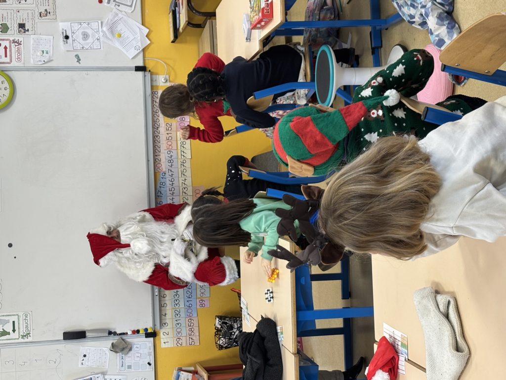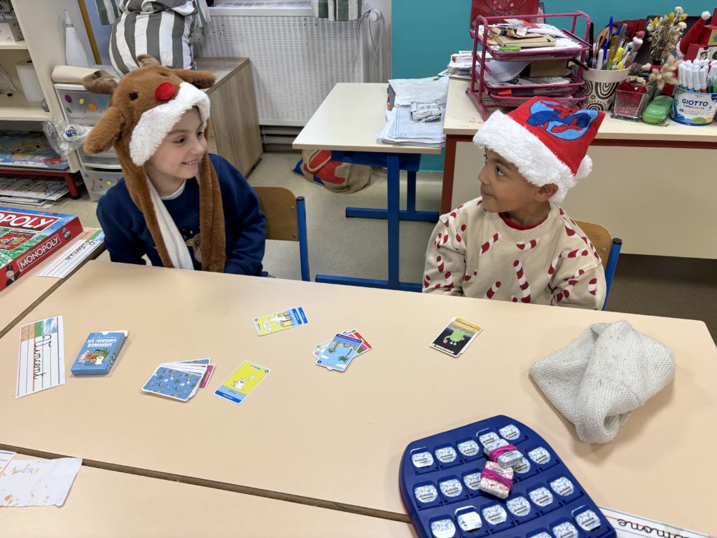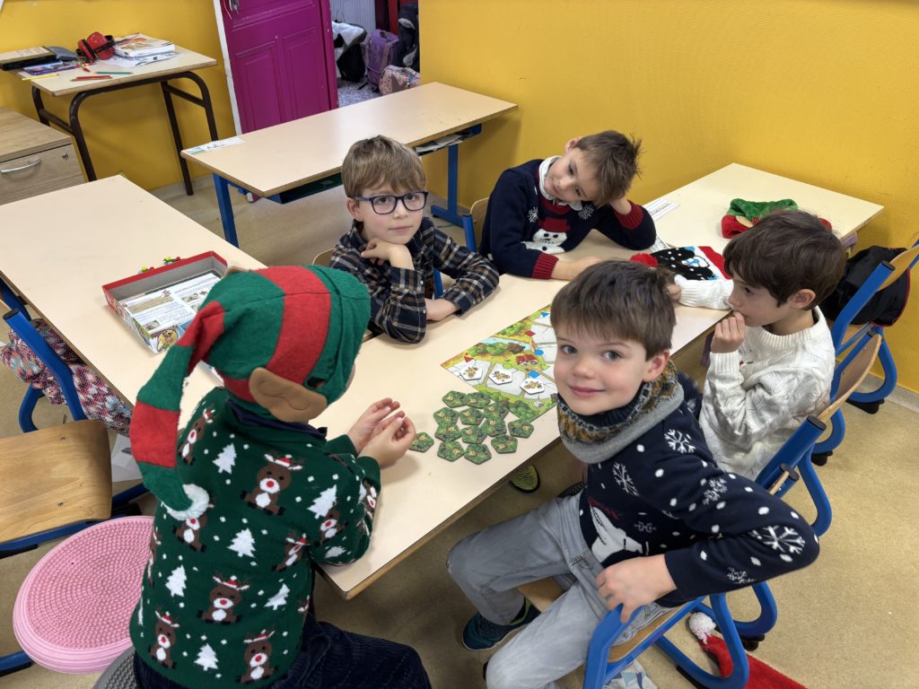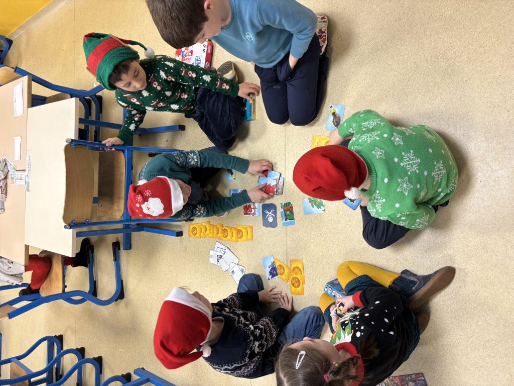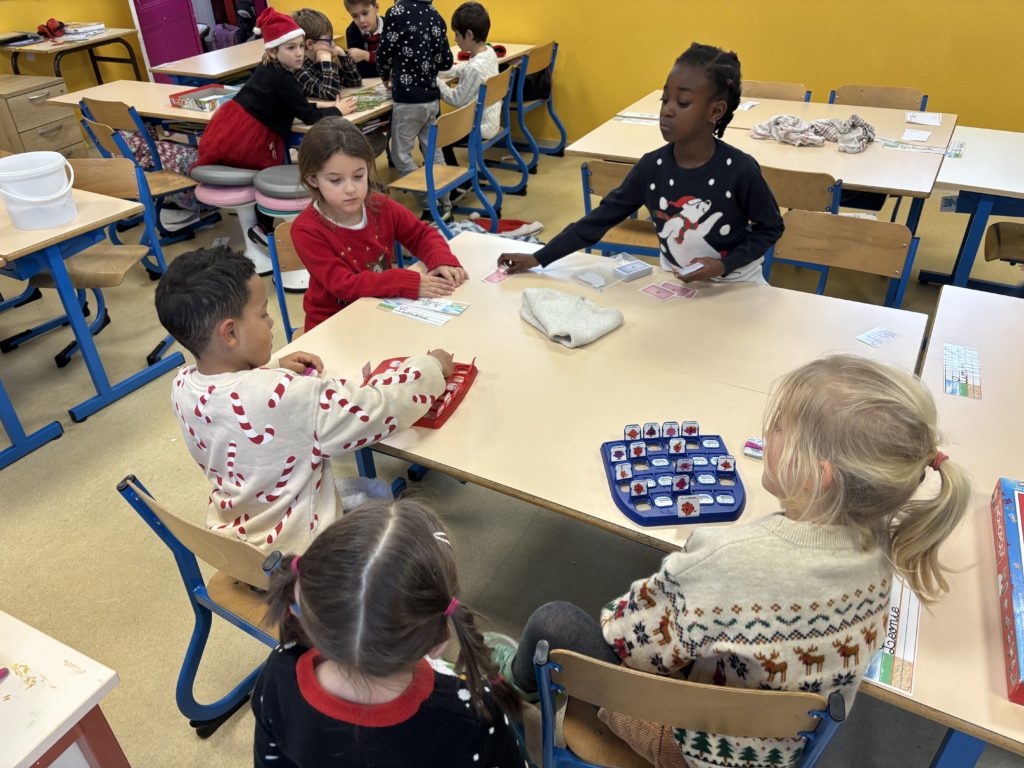 Journée de Noël chez les CP-CE1 vendredi, décembre 19, 2025 Karine RACAPE CP-CE1 Journée jeux de société et venue du Père Noël pour ce dernier jour !