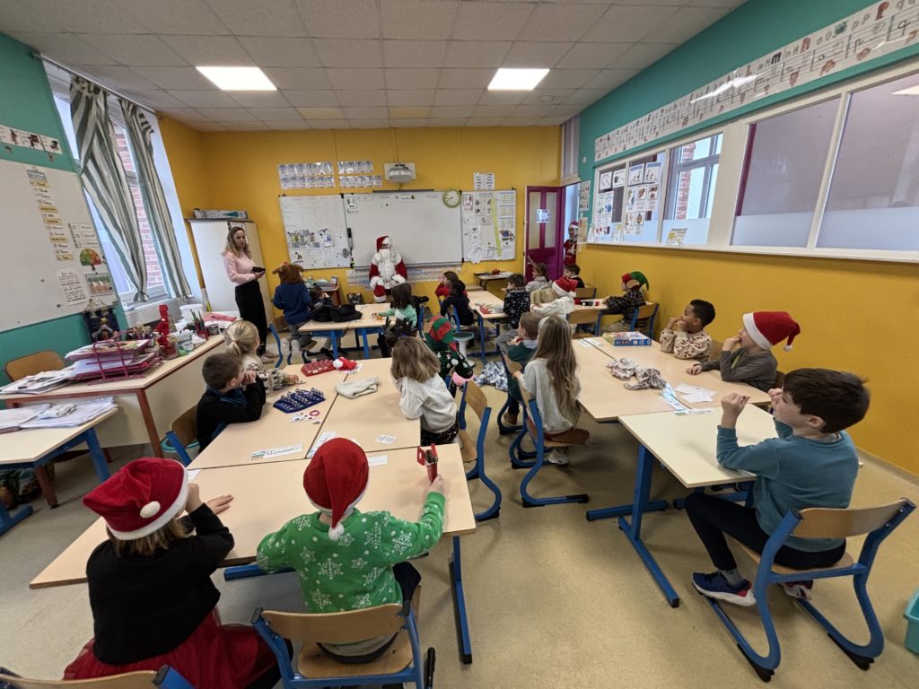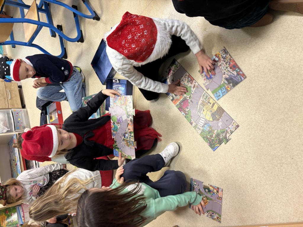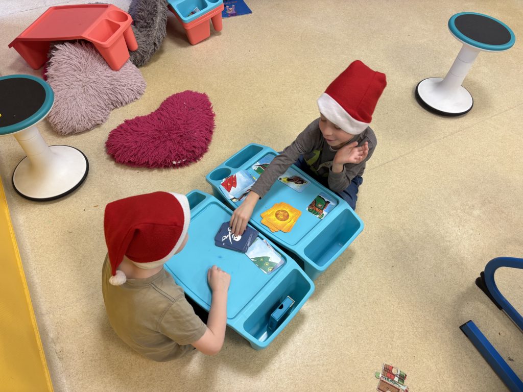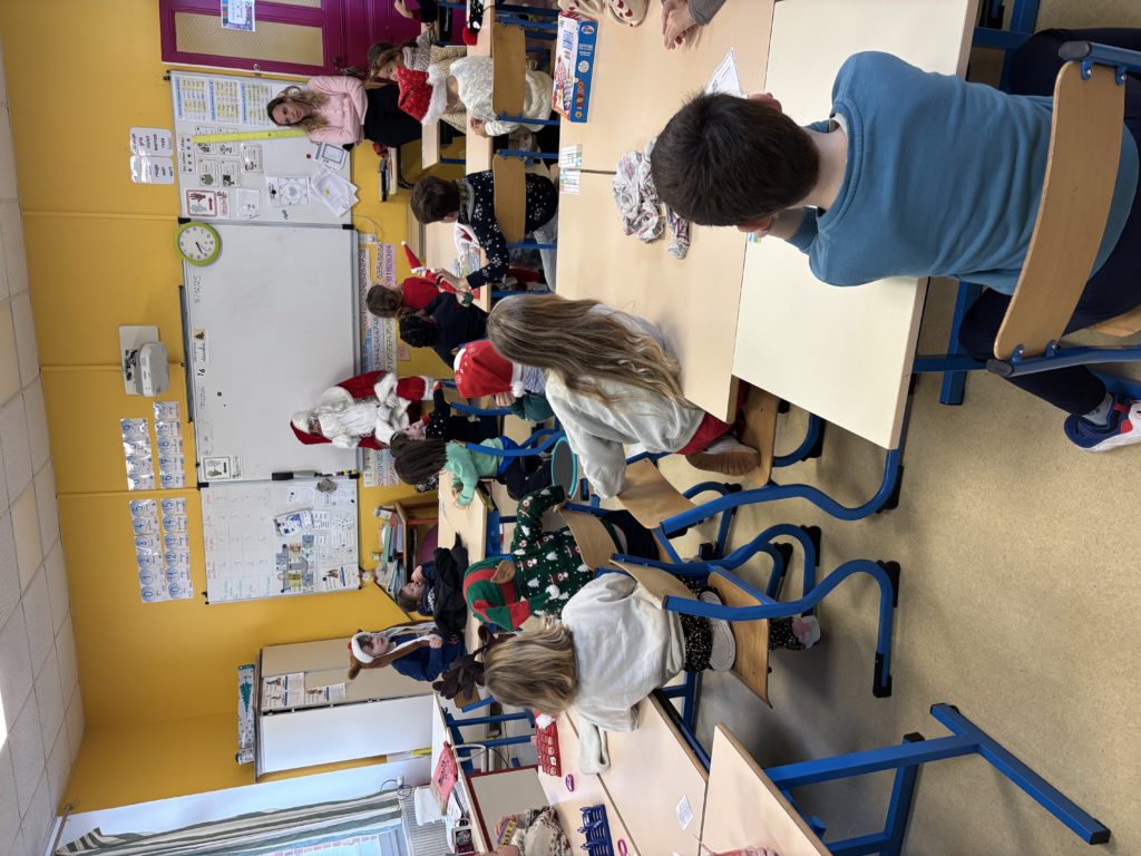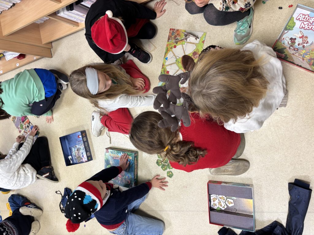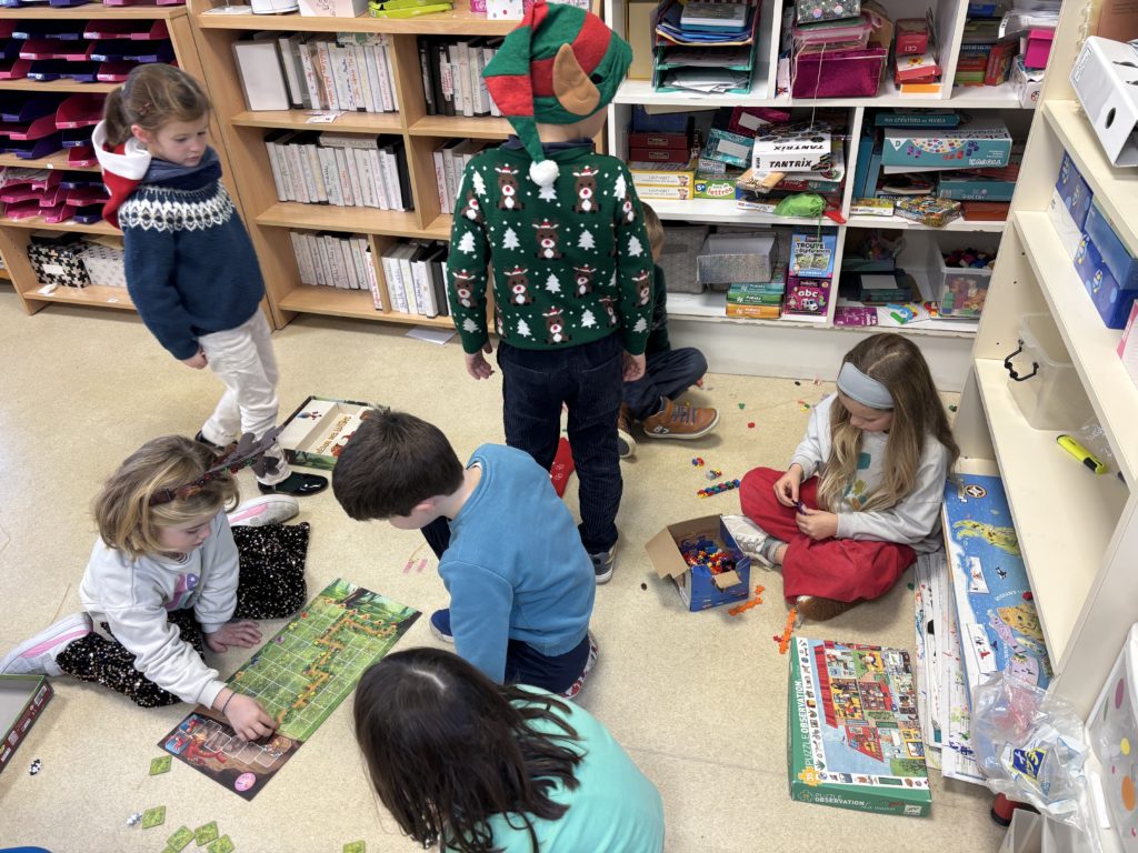 Journée de Noël chez les CP-CE1 vendredi, décembre 19, 2025 Karine RACAPE CP-CE1 Journée jeux de société et venue du Père Noël pour ce dernier jour !
