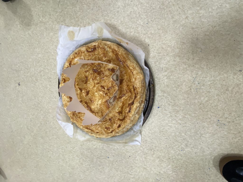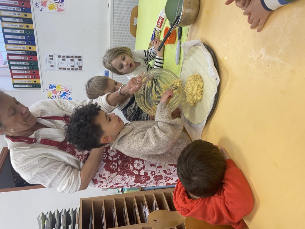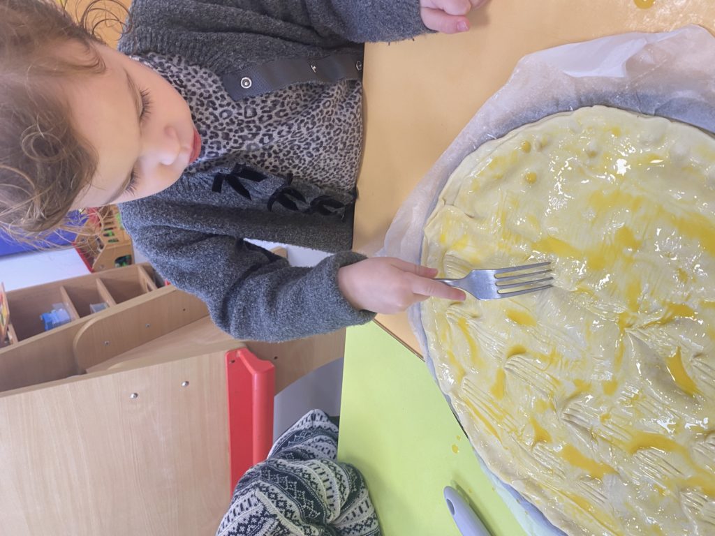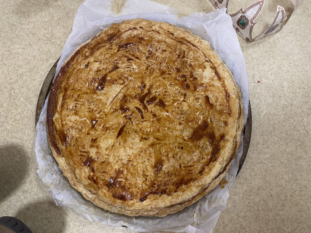 Vendredi, nous avons cuisiné deux délicieuses galettes des rois. Nous avons étalé la pâte feuilletée, puis nous l’avons piquée avec une fourchette. Nous avons fait la crème d’amandes en mélangeant la poudre d’amandes, le beurre, les œufs et le sucre. Nous l’avons étalé, nous n’avons pas oublié de mettre la fève avant de fermer notre galette. Puis nous l’avons décorée avant de la faire cuire. Nous nous sommes régalés !