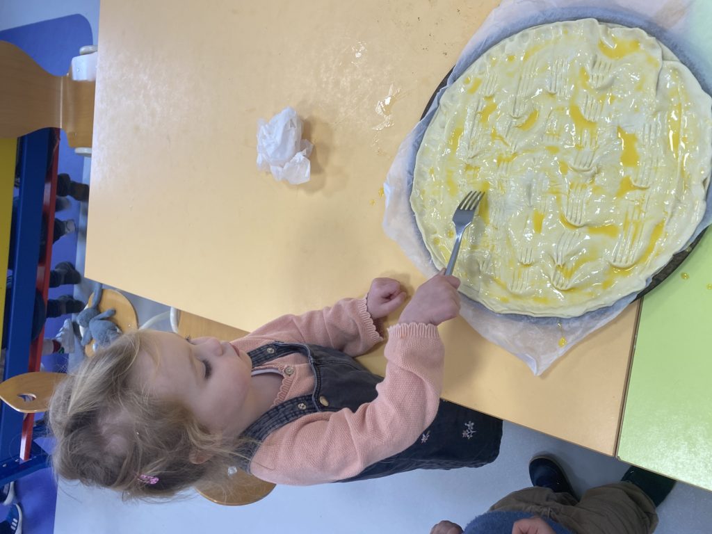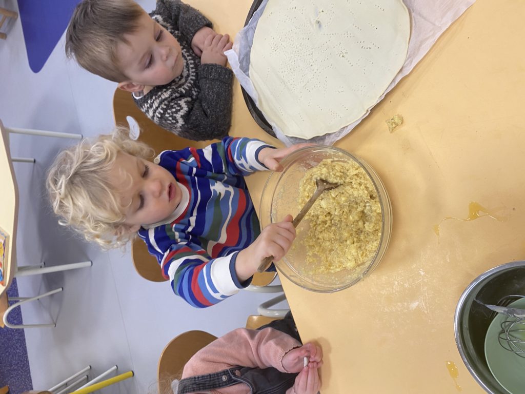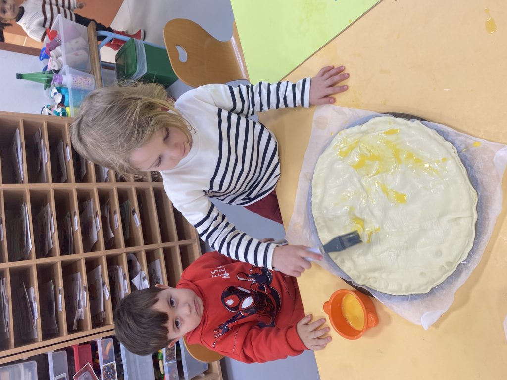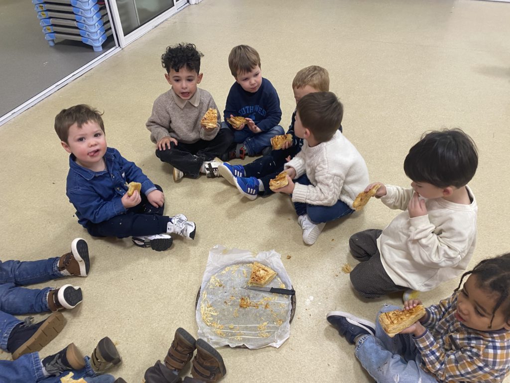 Vendredi, nous avons cuisiné deux délicieuses galettes des rois. Nous avons étalé la pâte feuilletée, puis nous l’avons piquée avec une fourchette. Nous avons fait la crème d’amandes en mélangeant la poudre d’amandes, le beurre, les œufs et le sucre. Nous l’avons étalé, nous n’avons pas oublié de mettre la fève avant de fermer notre galette. Puis nous l’avons décorée avant de la faire cuire. Nous nous sommes régalés !