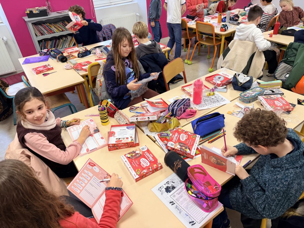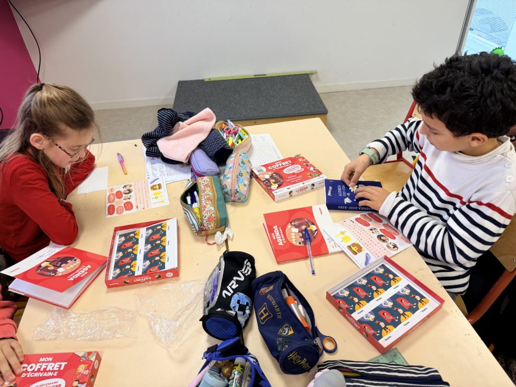 En octobre, les enseignantes de CM ont participé à un concours d’écriture et ont gagné pour chaque élève un coffret d’écrivain.