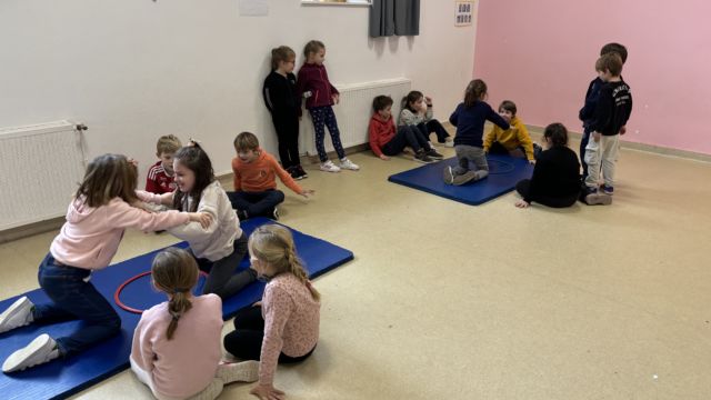 Pendant cette période hivernale les CP/CE1 se sont essayés a l apprentissage de la lutte grâce a des petits jeux de rôles .. les élèves ont appris les différents rôles (attaque ,défense, arbitrage) et différentes prises.