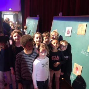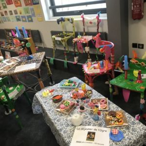 Ce lundi 25 novembre la classe de CP/CE1 s’est rendue au Palais des Congrès pour le Salon du livre sur le thème de la nourriture !!Nous avons pu nous balader pour observer les œuvres d’art réalisées par certaines écoles , participer à des ateliers et écouter des histoires d’ogres , de loup, de soupe … mises en scène au travers de Kamishibai.