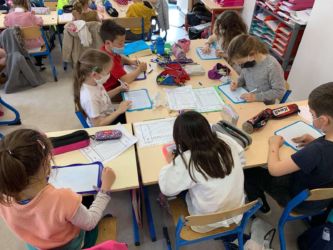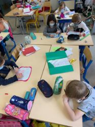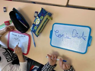 Les élèves si sérieux se sont tout de suite mis au travail en faisant du mieux qu’ils pouvaient !!La maîtresse a quand même mis fin rapidement à cette “torture” !!