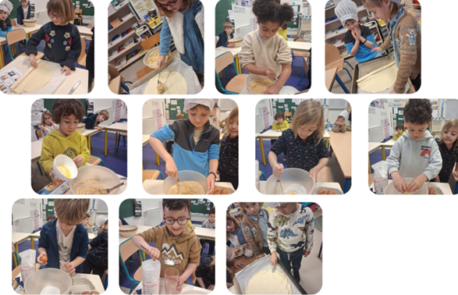 Après avoir étudié la recette de la galette en lecture , les élèves de CP CE1 se sont retroussés les manches pour les confectionner .Puis au goûter ils ont eu le bonheur de la déguster !