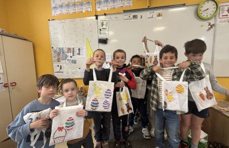Vive Pâques ! mardi, avril 7, 2026 Karine RACAPE CP-CE1 Nous voilà prêts pour partir à la chasse aux œufs de Pâques ce week-end !!!