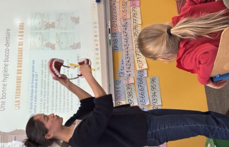 Ce lundi 23 mars, la maman de Gabrielle qui est dentiste est venue faire une intervention dans notre classe , suite à notre travail sur les dents. Nous avons pu observer des empreintes de dents ,
